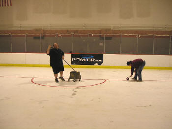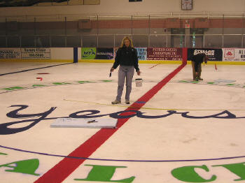 One more week until we reopen and the ice is being prepared. Lines are in and ice logos are being painted.