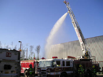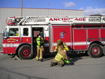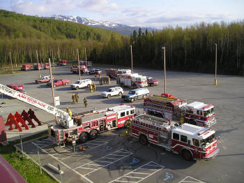 Anchorage Fire Dept. and the Chugiak Volunteers stage a joint exercise at the McDonald Center.
